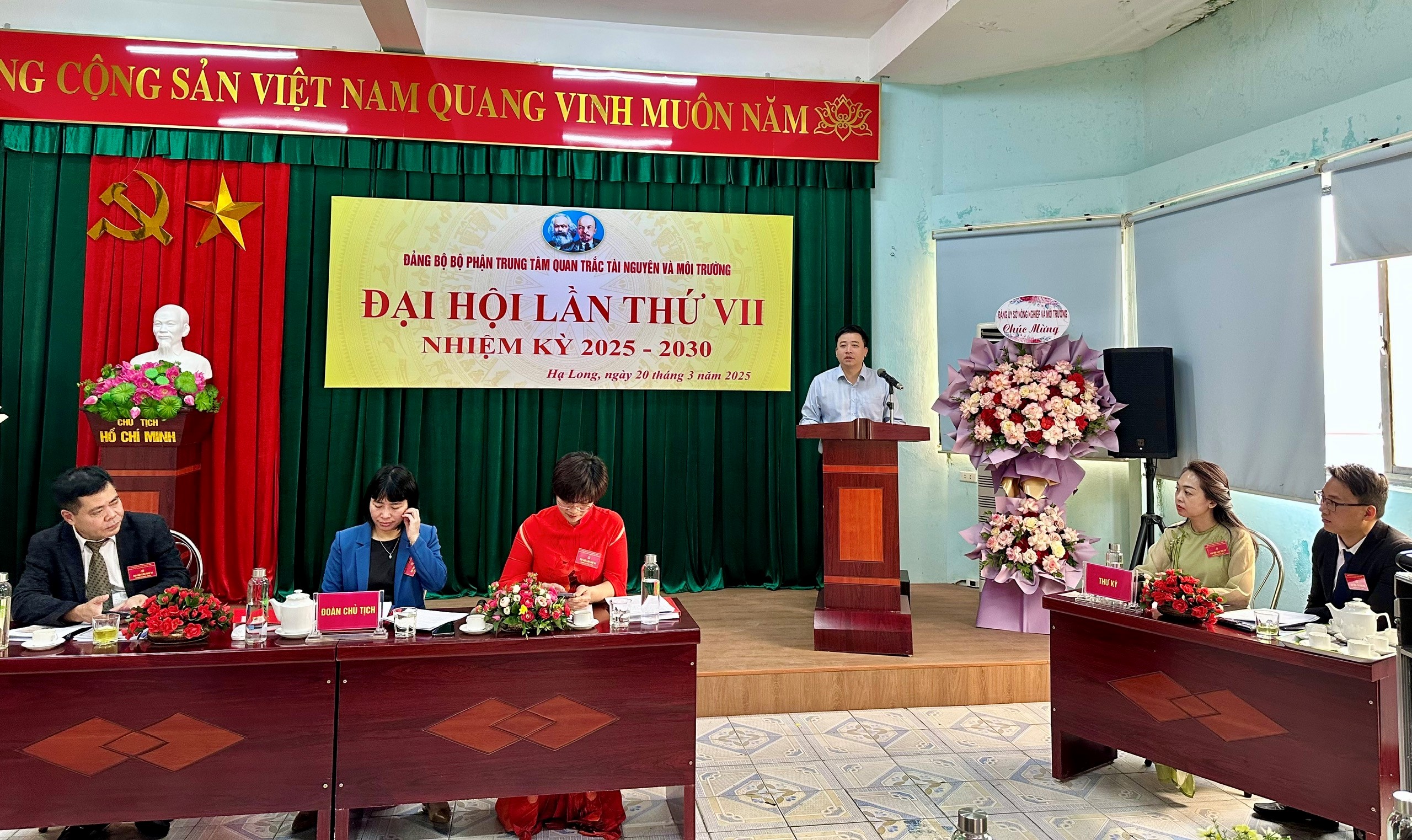Tại đại hội, đồng chí Nguyễn Quốc Anh, phó Bí thư đảng ủy bộ phận thay mặt Đoàn chủ tịch trình bày báo cáo chính trị tổng kết thực hiện Nghị quyết Đại hội Đảng bộ nhiệm kỳ 2025-2030 và Phương hướng, mục tiêu, nhiệm vụ và giải pháp nhiệm kỳ 2025-2030. Báo cáo nêu rõ những mặt tích cực, sự nỗ lực, kết quả tập thể Đảng bộ đã đạt được trong nhiệm kỳ 2020 – 2025 như quan trắc và lập báo cáo kết quả quan trắc chất lượng môi trường tỉnh Quảng Ninh, quản lý hệ thống quan trắc môi trường tự động trên địa bàn tỉnh, phối hợp với cơ quan chức năng như Thanh tra sở, Chi cục bảo vệ môi trường, công an tỉnh,… trong công tác quan trắc, giám sát môi trường phục vụ công tác thanh, kiểm tra về môi trường. Các hoạt động hướng dẫn, tư vấn lập báo cáo đánh giá tác động môi trường, giấy phép môi trường được Trung tâm trú trọng, đặc biệt hỗ trợ các Hợp tác xã, doanh nghiệp nuôi trồng thủy sản thực hiện thủ tục đánh giá tác động môi trường từng bước giao biển, phát triển kinh tế biển đảo bền vững.